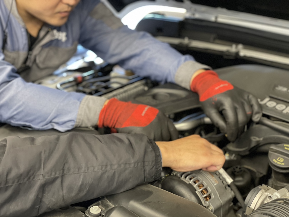 定期点検や車検見積もり、診断等、作業内容は多岐にわたりますが、仲間のメカニックと協力して少しでも早くトラブルの解決や作業が仕上げられるように取り組んでいます